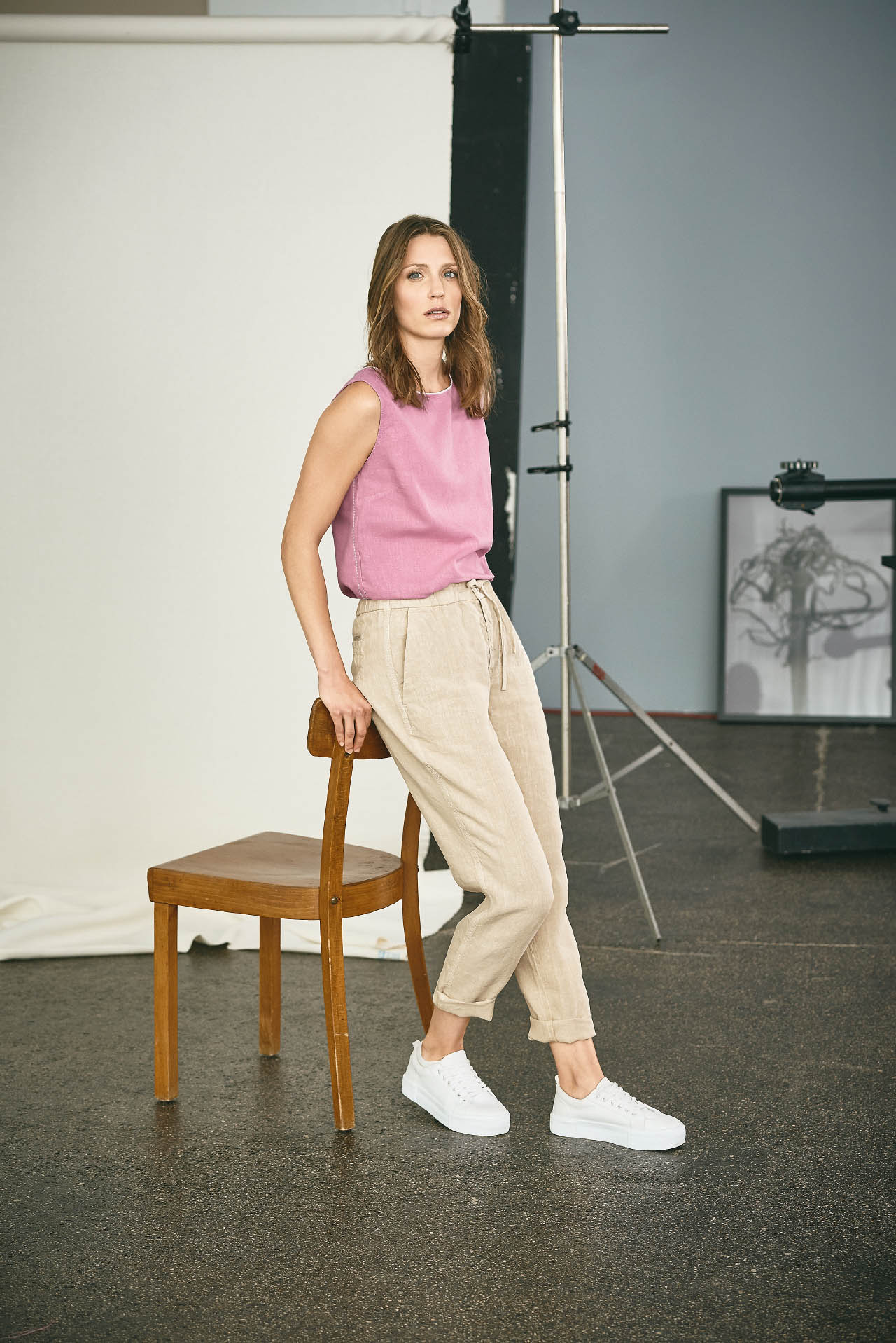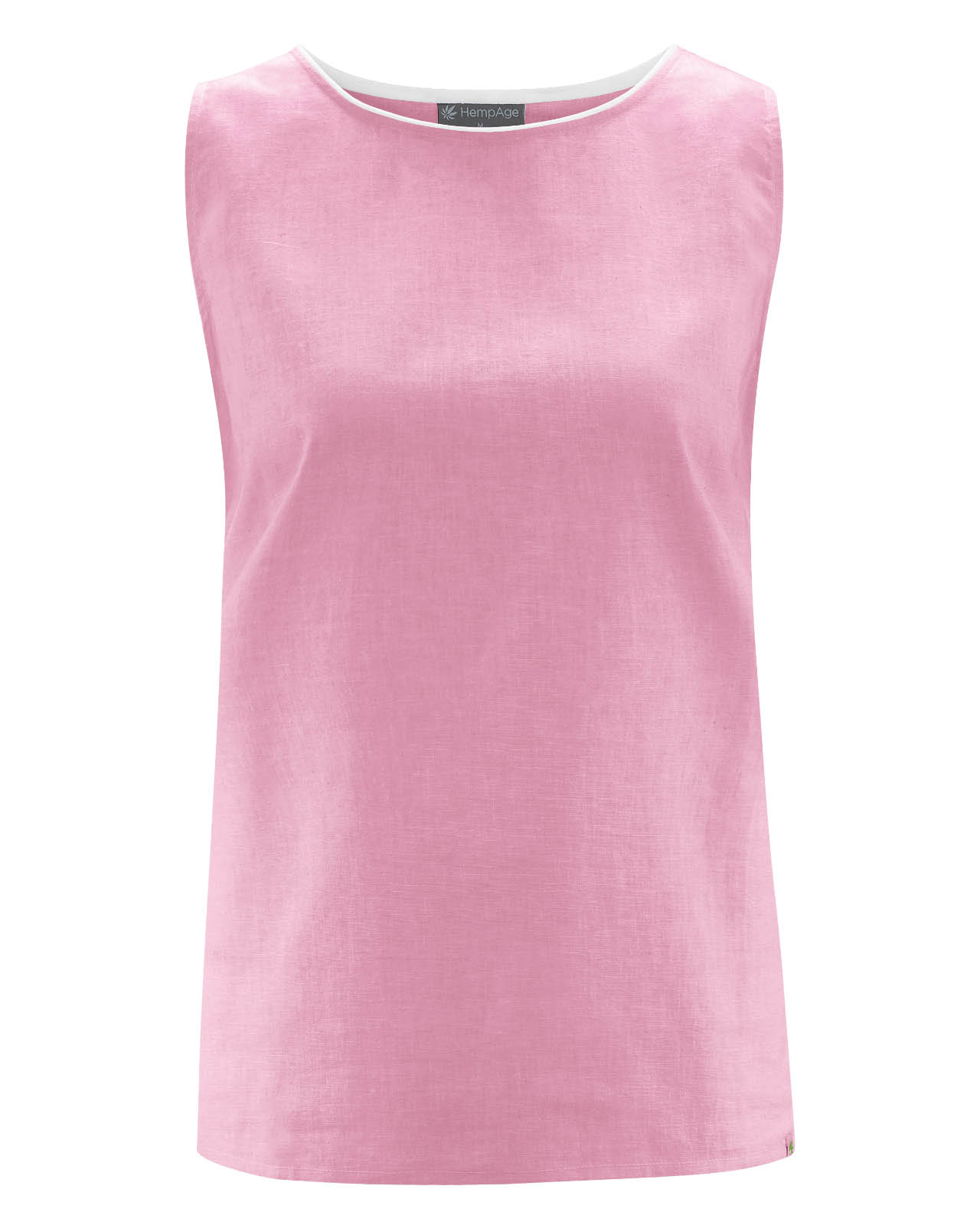 Bluza brez rokavov navdušuje s preprosto, ravno obliko. Z ljubeznijo izbrane pastelne barve jo je čudovito kombinirati z ostalimi oblačili. Kontrastna obroba izreza v beli barvi doda kanček svežine. Zračen material iz konoplje in ekološkega bombaža pokaže svoj pozitiven učinek zlasti v toplejših dneh.