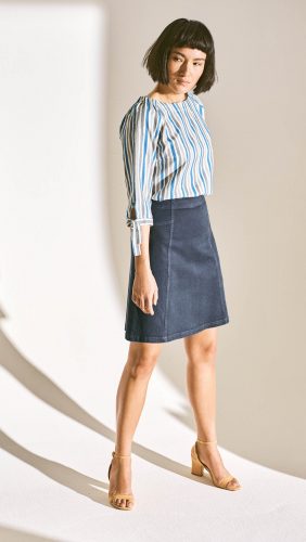 Bluza s poldolgimi rokavi ponazarja svež skok v pomlad. Raven kroj je omehčan z modnim, ob ramenih nabranim in širokim vratnim izrezom ter trakovi na koncu rokavov. 3-barven črtast dizajn izstopa in daje sporočilo okolici, da si nekaj posebnega.