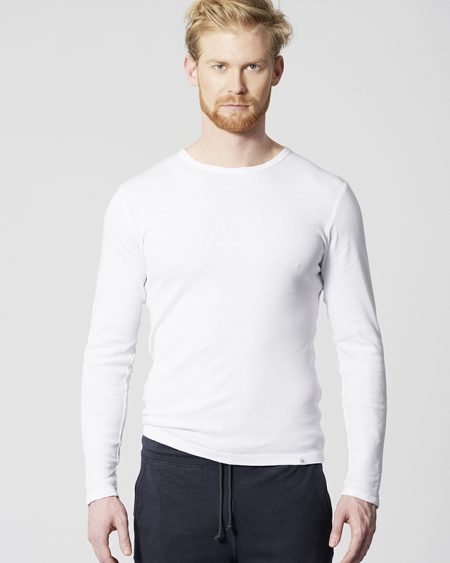 Pripravi se za odhod! Majica z dolgimi rokavi, ki se vedno prilega – četudi si v časovni stiski. Je oprijetega kroja z okroglim izrezom, v prijetno mehki, rebrasti tkanini, lahko se nosi kot zgornji ali spodnji del in vedno pokaže dober stil oblačenja.