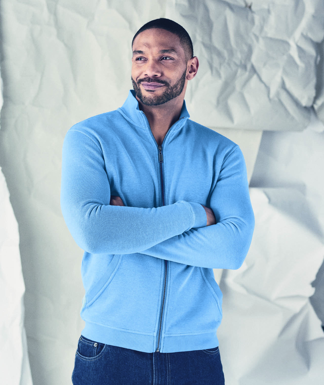 Sproščena jakna za različne priložnosti, športen sweat material, zadrga, našiti žepi.
