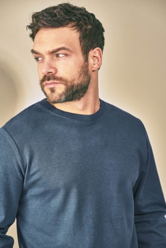 Enostavna, mehka majica z dolgimi rokavi, krtačen džersi, dekorativen barvno kontrasten dekorativen trak na notranjem delu izreza.