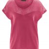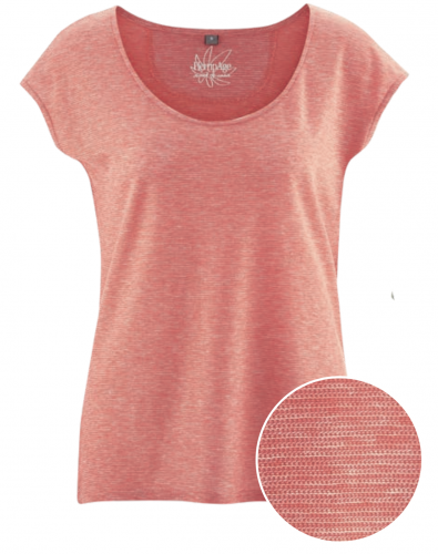 Majica s kratkimi rokavi, meliran videz, džersi, prirezana ramena, širok izrez.