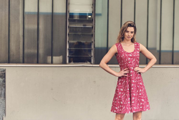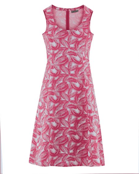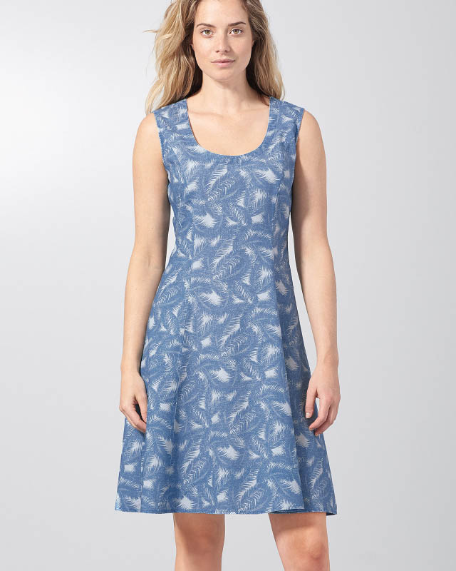 Obleka z modnim potiskom palminih listov je popolna spremljevalka toplih poletnih dni. Zahvaljujoč lahki tkanini z visokim odstotkom konoplje zagotavlja dodatno udobje. Čudovit vzorec navdihuje s svežino in dizajnom – skorajda lahko slišiš šušljanje velikih palminih listov v hladnem vetriču.